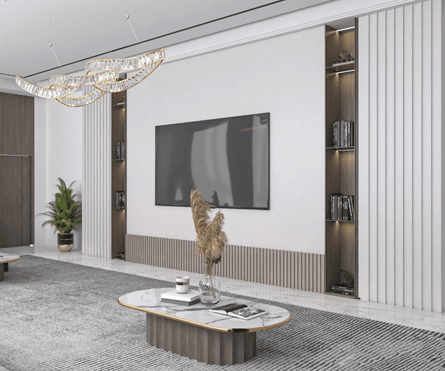من ناحية التصميم الداخلي، تعتمد التصاميم المودرن لعام 2024 على البساطة والأناقة، حيث يتم استخدام الألوان المحايدة مثل الأبيض والأسود والرمادي مع إضافة لمسات من الألوان الزاهية من خلال الأثاث أو القطع الفنية كما يتم التركيز على استخدام مواد طبيعية مثل الخشب والحجر بجانب الزجاج والفولاذ، لخلق توازن مثالي بين العصرية والدفء